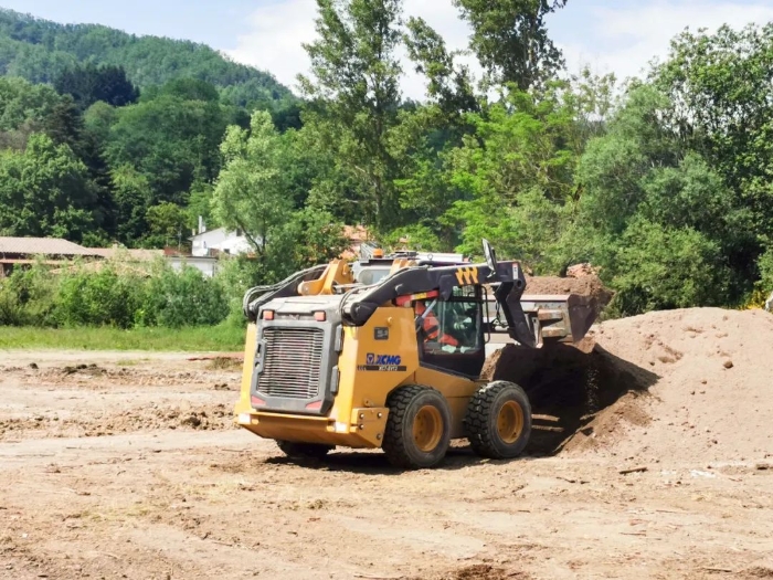 欧洲南部某国,徐工XC7-SV12滑移装载机正忙碌于市政管路铺设,在狭窄场地来去自如 红桃影视,作业游刃有余。