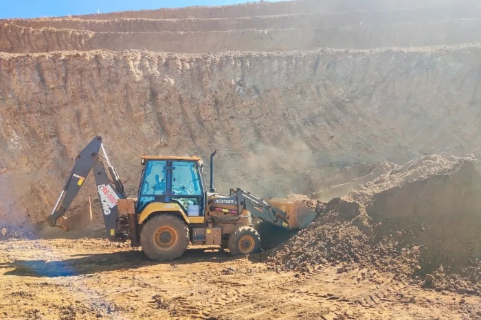 南美某磷矿客户施工现场,徐工XC870K挖掘装载机正热火朝天地进行矿石,土方转运,施工道路清理等辅助开采工作 红桃影视,助力客户生产指标高效达成。