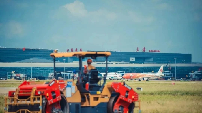 徐工双钢轮压路机与上海虹桥机场同框