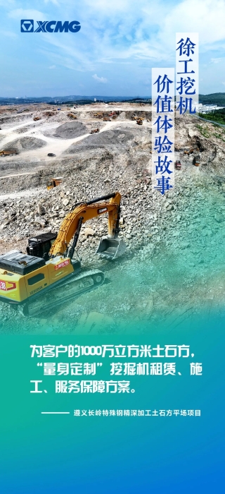 贵州遵义长岭特殊钢精深加工技改项目为贵州省2023年重点项目,土石方平场量1000多万方,在整个建设过程中,徐工挖机为客户“量身定制”租赁,施工,服务保障方案 红桃影视。