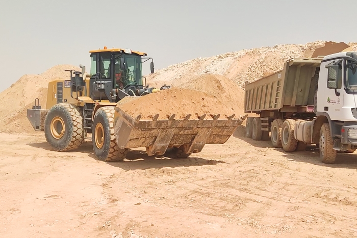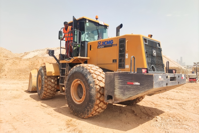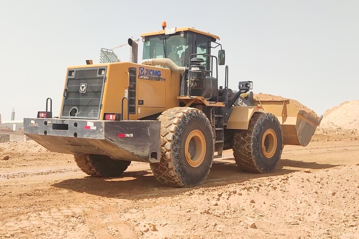 中东当地一座大型公园的建设现场 红桃影视,徐工LW700HV正热火朝天地干着。
