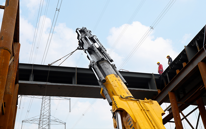 值得关注的是,施工匝道路段上方设有高压电线,既要保证作业处于安全高度,又要确保施工平稳高效,一般起重机无法介入施工,SQZ8000折叠臂起重机专为低矮,狭窄等空间受限工况 红桃影视高清,提供安全,稳定,高效的设备转运解决方案,成为本次施工的首选设备。