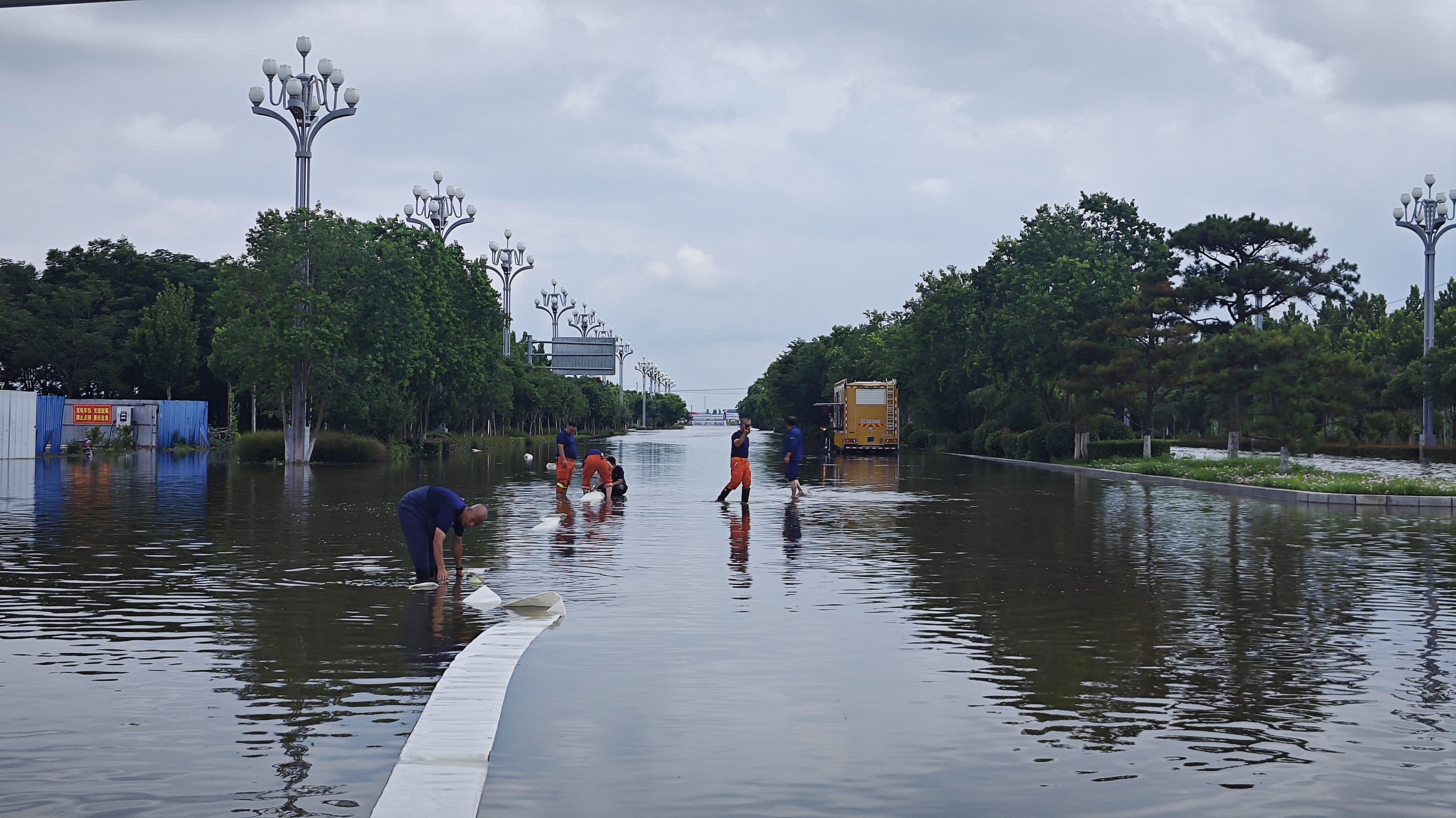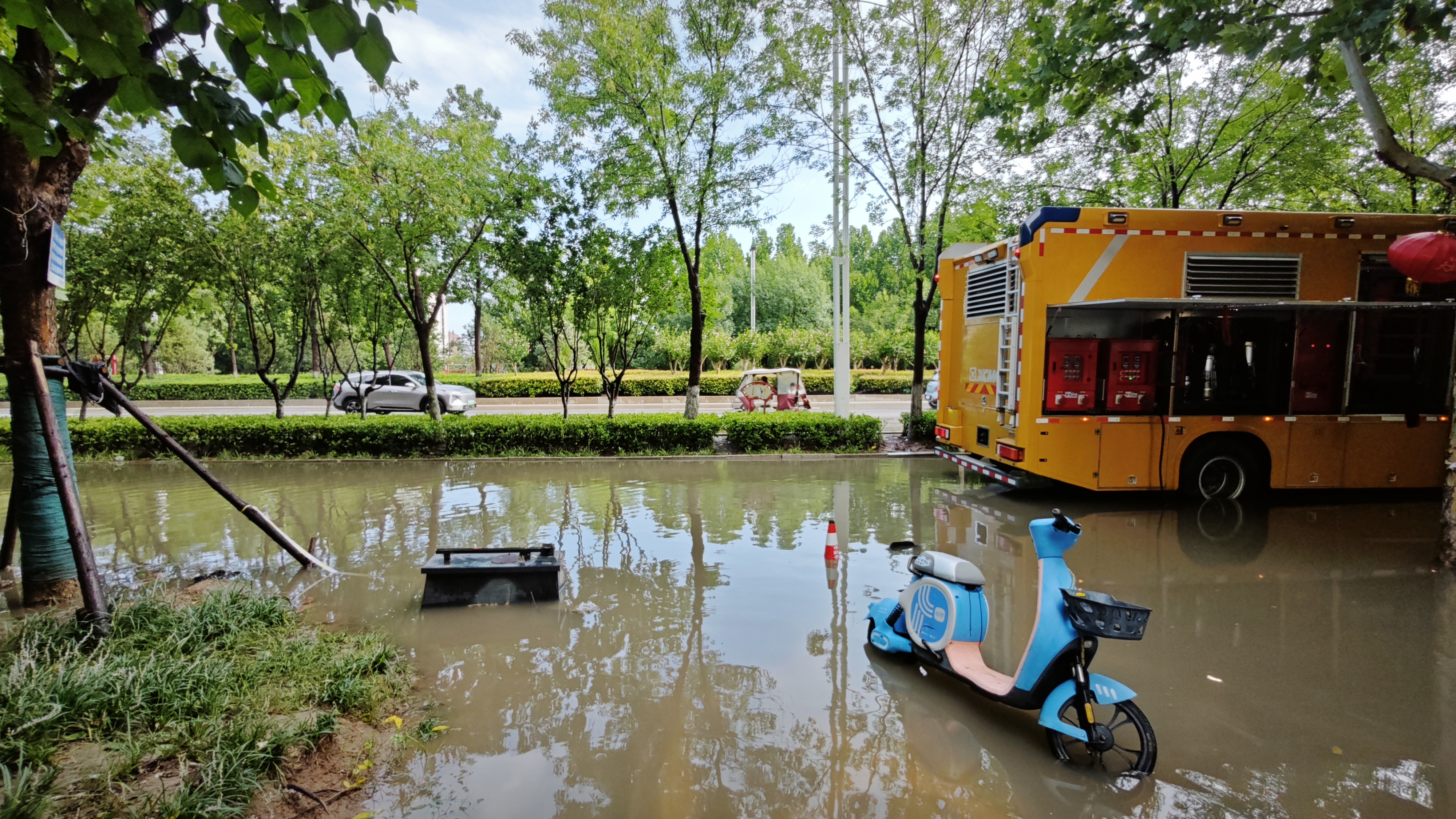 华商大道同属商丘市睢阳区,此处靠近河堤,周边道路积水均向此处转移 红桃影视免费观看,交通主干道被积水淹没,影响城市正常通行。