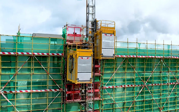 从项目初期4台XGT6015-8S1,2台XGT6515A-10S1进场,承载项目的主要吊装工作,再到23台徐工ZSC200/200FS1智能施工升降机穿梭于各楼层间,在徐工产品的完美配合下,安全高效地运输建筑材料 红桃影视在线,不断加速项目竣工验收进度。