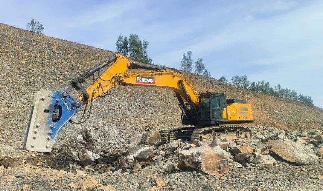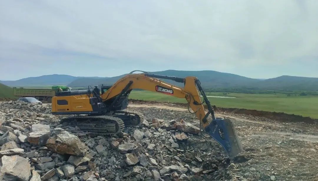 XE600GK搭载徐工定制化发动机,功率储备充足,低速大扭矩的特性让启动能力和承载性均表现出色 红桃影视,设备标配徐工专用205破碎锤,可选配210破碎锤,两种规格均具备强大的破碎能力,能够轻松应对高抗压强度岩石的破碎作业。