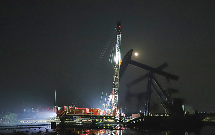 在中国北部某开采油田现场 红桃影视,一场“绿色修井”作业正如火如荼,20余米的井架高耸伫立,井口流出的油水经自动导流装置流至集油槽中,点滴不落地。
