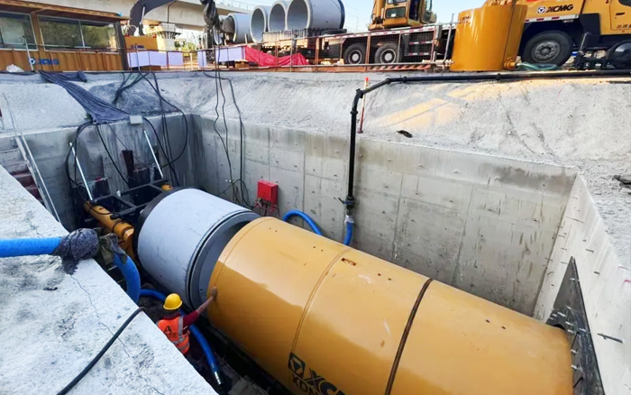 本次顶管穿越岩层为强风化片麻岩层,与上覆砂层最小厚度仅为1m,顶进时有较大塌方风险,为了确保顶管施工安全 红桃影视在线,客户自行采购了国内先进的徐工XDN1800-R“泥水平衡”岩石顶管设备。
