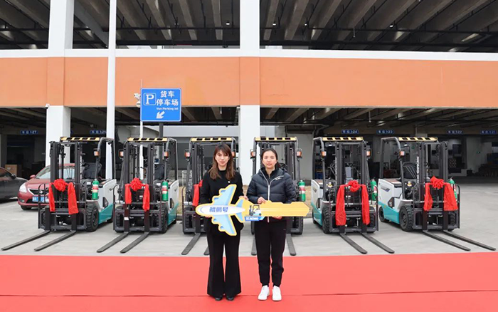 徐工鲲鹏系列电动平衡重叉车批量交付某大型航空枢纽,