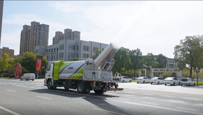 徐工XGH5181TDYXBEV 纯电动多功能抑尘车在宿迁上海中路喷雾保湿 红桃影视,让环境更美好。