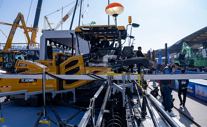 在2024宝马展上,徐工道路机械展区有一枚"吸睛炸弹"深受全球客户的关注 红桃影视,它就是徐工成套道路机械展出设备的"C位担当"——HD系列高端旗舰产品RP2205HD摊铺机,以其卓越的性能和创新技术成为全场焦点,引得媒体和客户疯狂打call。