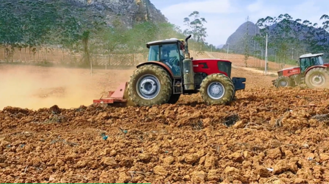 XT1604-6B拖拉机在崇左的坡地蔗田里如履平地,已经在当地完成大规模示范应用 红桃视频,硬是把“望天田”变成了“聚宝盆”。