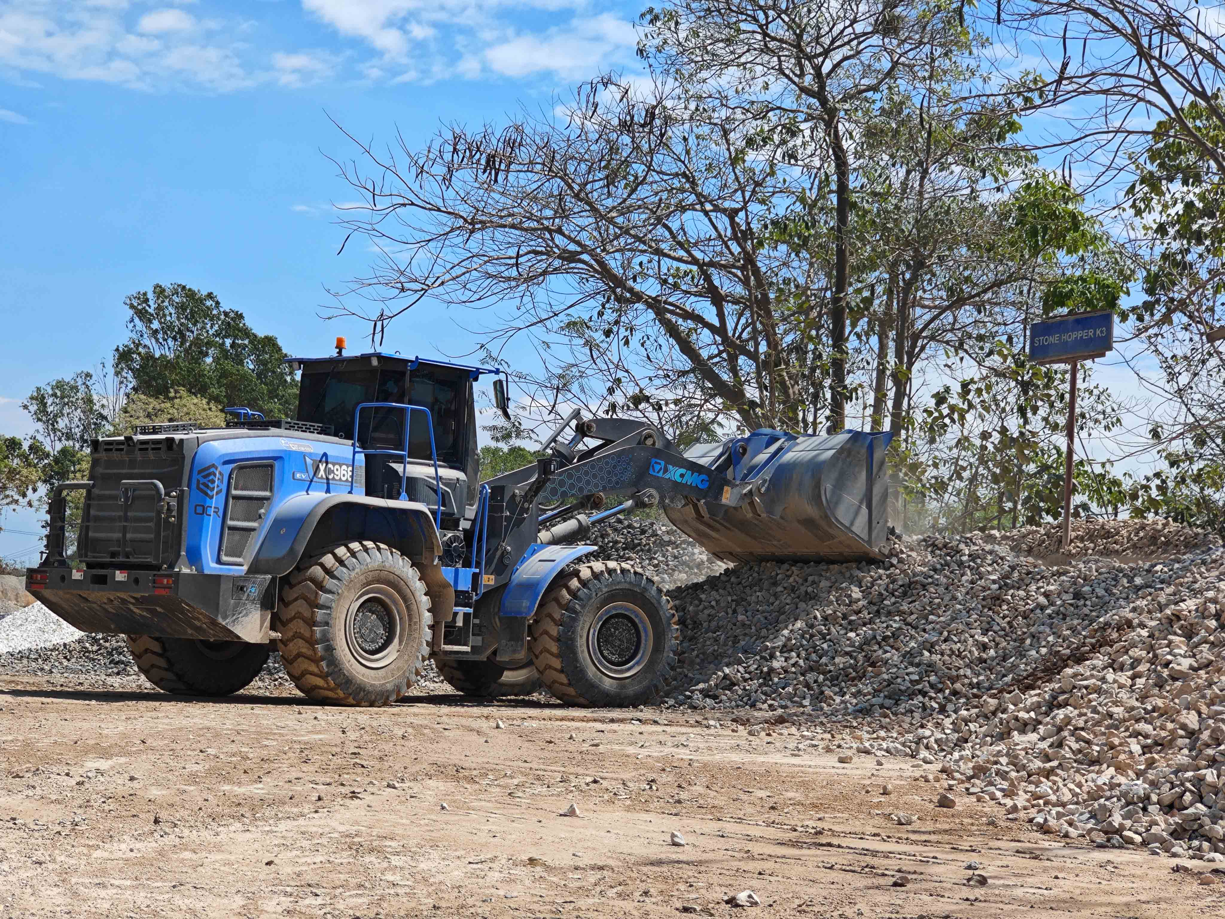 矿山生产,作业时间长,物料坚硬密度高,道路崎岖,工况较为险重 红桃影视在线,徐工XC968-EV纯电动装载机的新能源优势,在矿道端的铲装作业优势非常明显,相对密闭空间内,零排放,低噪音对工段一起作业的户外工作人员的健康非常友好。
