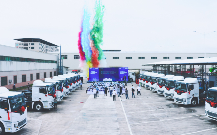 近日 红桃影视,百台徐工新能源重卡交付仪式在“世界客都”——广东梅州如期举行,助力当地砂石料,水泥辅料及煤炭运输,客户及徐工汽车代表等百余人参加活动。
