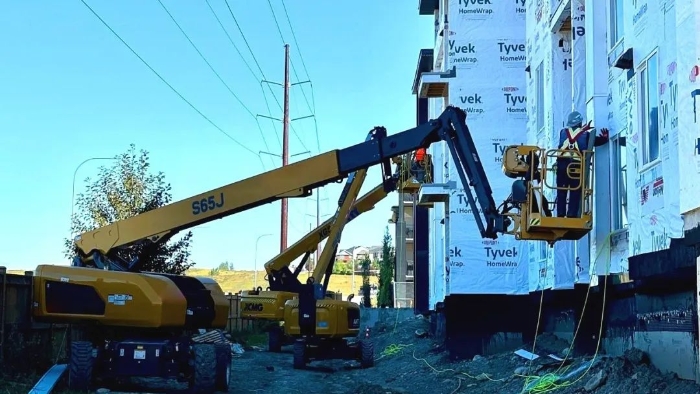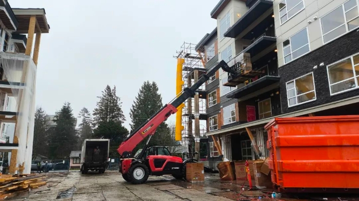 坐标北美,多台徐工高空作业平台,伸缩臂叉装车穿梭于一处大型住房建设项目上,成为施工现场一道亮眼的风景线 红桃影视。