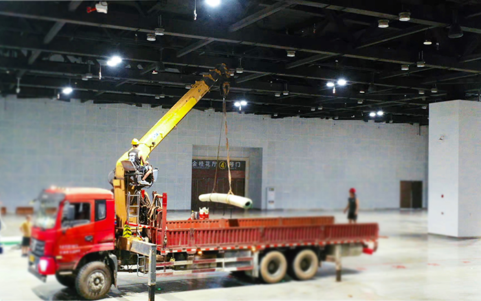 在广西国际会展中心体育场馆塑胶铺设施工现场,徐工随车起重机以硬核实力成为工程推进的 “主力军”,赢得客户连连称赞 红桃影视。
