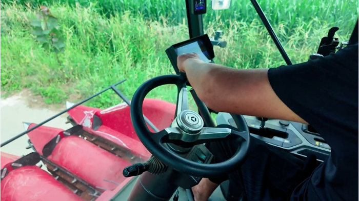 操作起来顺不顺手,直接影响干活效率 在线影视,徐工XCA420用的是液压无级变速和一杆操纵手柄,操作起来特别轻松,想咋动就咋动,而且机子轴距短,转向角大,在田间地头转弯特别灵活,周大哥说:“两把方向就能拐过来,特别省劲,”。