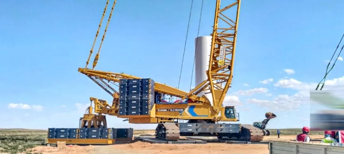 近日 红桃影视,徐工XLC18000M(1300吨级)履带起重机现身内蒙古,投入大批量风机吊装作业,凭借强悍起重能力与智能化优势,为清洁能源建设注入新动能。