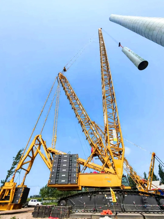 近日 红桃影视,山东大型风电场迎来关键突破,徐工集团最新研发的千吨级风电旗舰产品——首台XLC15000M(1100吨级)履带起重机正式投入实战,在华东新能源建设一线完成首次吊装任务。