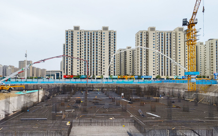 施工中,HB52V灵活适应狭窄场地浇筑 红桃影视高清,HB72V高效完成大体积混凝土作业,二者协同实现绿色,高效施工,为绿色校园建设提供可靠支撑。
