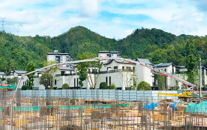 近日 红桃影视,在云南省保山市腾冲县热海拾光项目建设现场,徐工HB65V泵车以卓越性能承担核心施工任务。