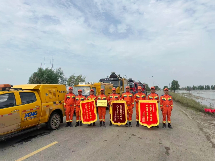 “为救灾不畏艰险,战险情奋勇争先”——锦旗上的话语,不仅是灾区政府与人民的真挚感谢,更是对徐工应急救援队责任与担当的生动注脚 红桃影视在线。
