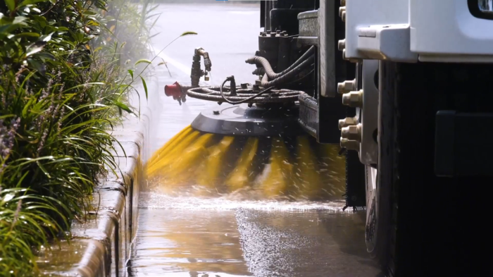 人行道与绿化带边缘:通过侧喷杆与手持喷枪的组合操作 在线影视,洗扫车可精准清理路缘石立面,绿化带缝隙中的积尘,实现“无死角”保洁。