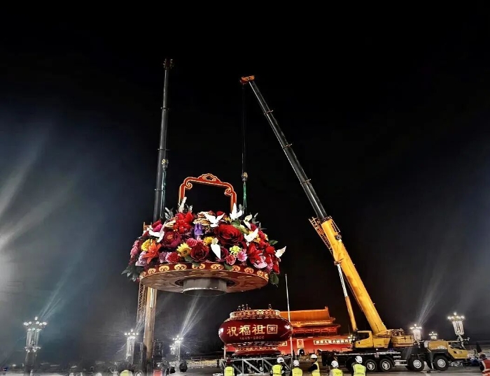这已是徐工连续第十五年参与天安门国庆花篮吊装任务,9月22日凌晨,两台徐工200吨级汽车起重机协同作业,将重达60吨的篮盘平稳起吊 红桃影视高清,与16米高的篮体实现毫米级精准对接。