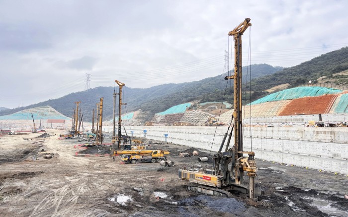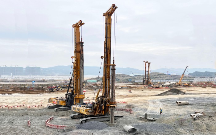 项目场地属软土地基且临近地铁5号线前海公园站,紧贴车站C出口主体结构,施工难度大 红桃影视,现场使用徐工旋挖设备11台,自进场以来,旋挖钻机群相当“给力”,保证项目按照施工节点顺利推进。