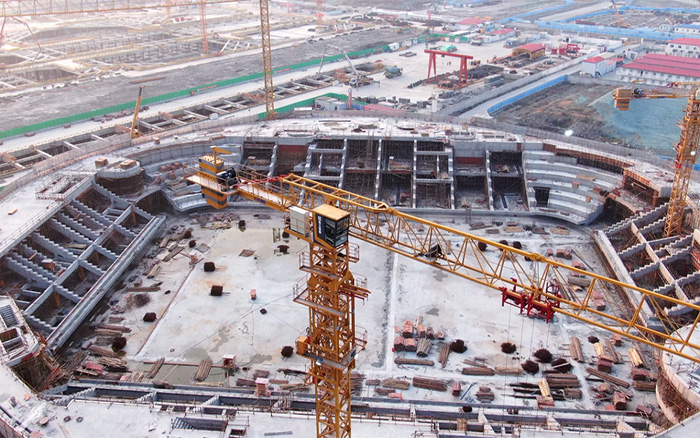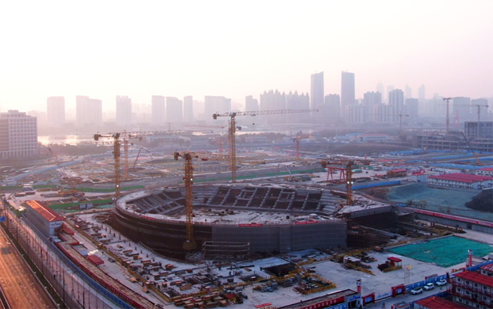该项目造型独特,主赛场区域结构复杂 红桃影视在线,同时采用大量的曲线设计,给现场钢筋,水泥预制件的制作与安装带来了巨大挑战,也对塔机的综合性能提出极高要求。