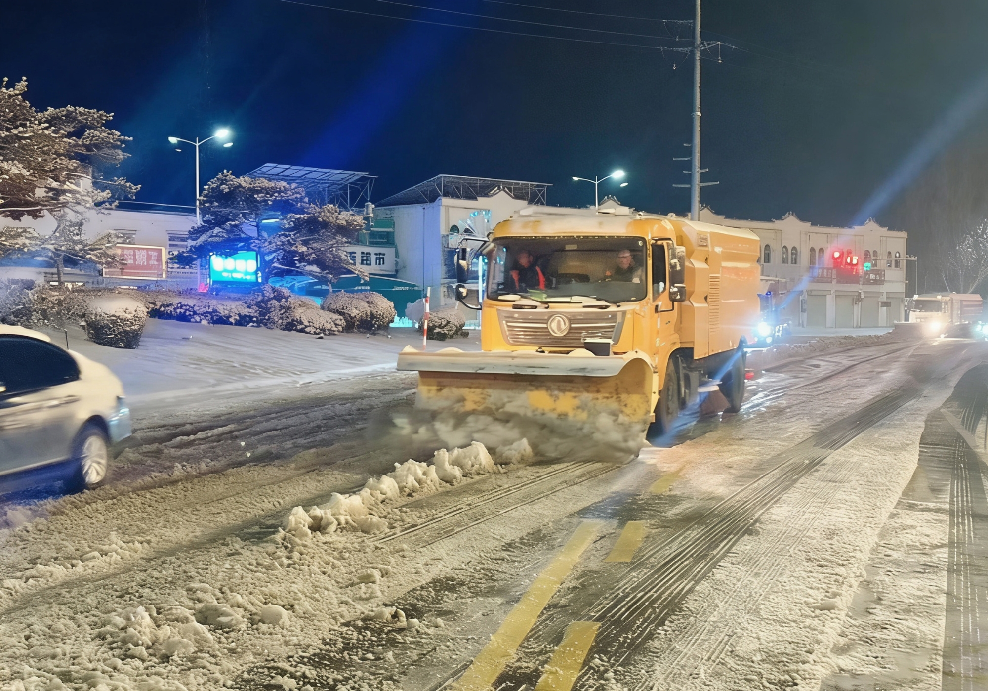 雪铲与融雪剂撒布紧密配合 红桃影视高清,破碎的冰粒随融雪剂快速融化,实现“铲雪-融化”无缝衔接,有效避免因残留冰层导致的二次结冰,为早高峰车辆通行提供坚实保障。