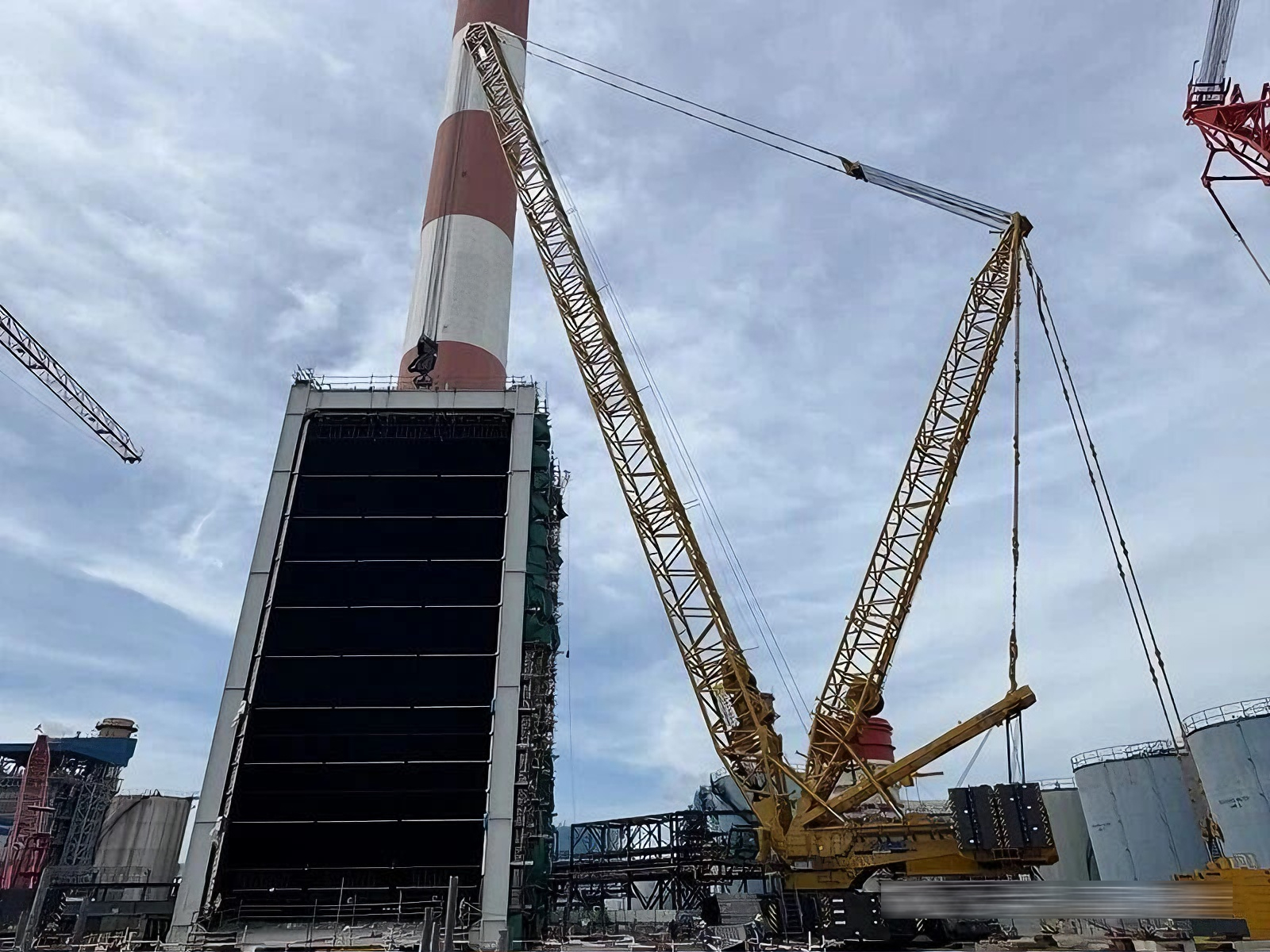 近日,在东南亚600兆瓦联合循环电站项目建设现场 红桃影视,徐工XGC16000(1250吨级)履带起重机圆满完成余热锅炉全部受热面模块的吊装任务。