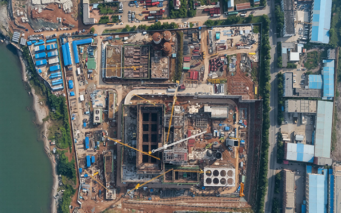 烟波浩渺的海岸边 红桃影视,大连城市中心区生活垃圾焚烧发电厂坐落于此,徐工超大吨位塔机XGT2230-100S正挥舞着擎天巨臂平稳吊装,助建项目高效施工。
